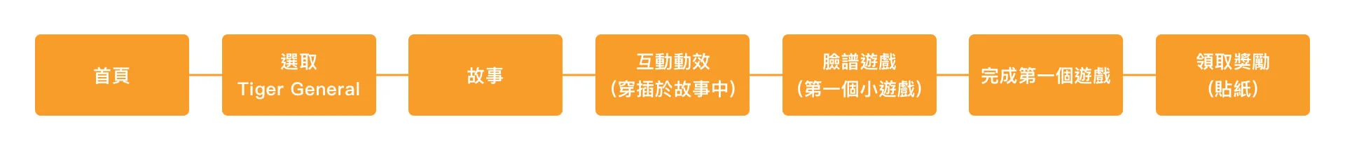使用者的第一個關卡為虎將軍,當使用者完成關卡後才能解鎖下一關,進入到下一層級,這是一個增加挑戰性及趣味性的設計。