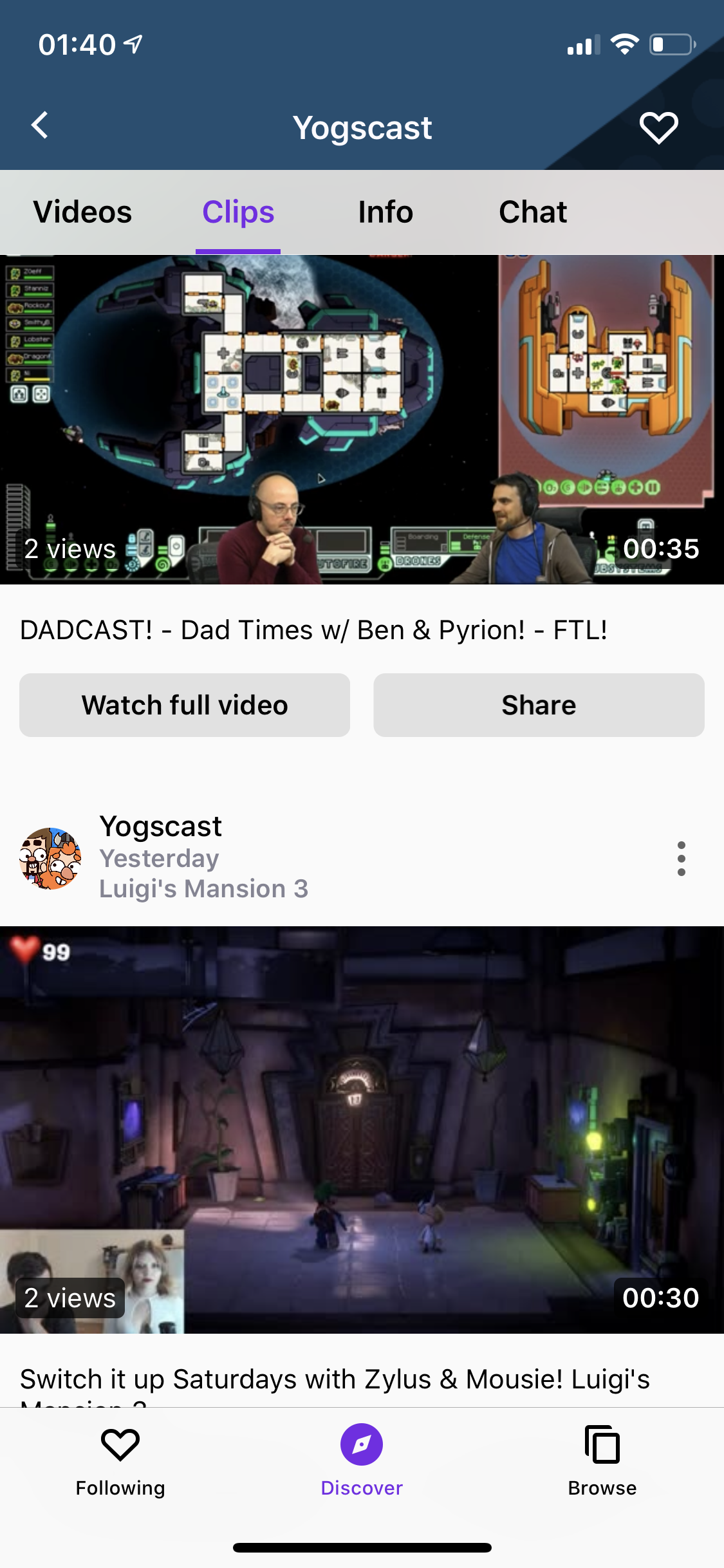 雖然在框架內可有些許個性化設計,但在底下分類項裡,如Videos及Clips的內容呈現或許可將用戶名及頭像給刪除,因為其實在這個頁面裡就是自己上傳及實況的內容,全部影片都是相同的頭像及用戶名,令人感覺有些多餘,不如將他們去除,改將影片標題加以著重提示,也可將文字顯示區塊能更加聚焦,不至於在那區塊皆是要給用戶提供的信息(觀看人數、用戶名、用戶頭像、標題及標籤),不聚焦也反而弱化了重要信息。
