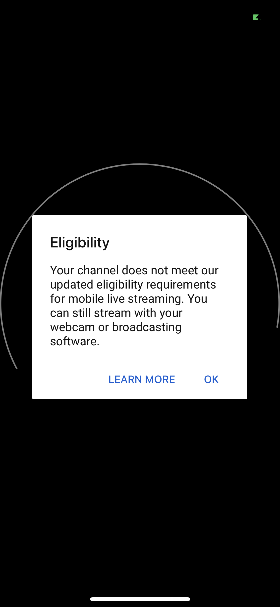 直播/上傳按鈕是容易被尋找到的,雖然上傳影片是容易的,但直播是有門檻的,並不是任何人都能直播,必須訂閱人數達1000人以上才可開啟移動端的直播功能。在界面上,如用戶無到達門檻標準還是可以點擊按鈕,只是當用戶點進之後會彈出提示,不符合移動設備直播要求,這可能就會造成用戶不必要的點擊,且這個點擊其實是無效的,建議可按權限來區分,如無到達門檻,可將其按鈕隱藏。