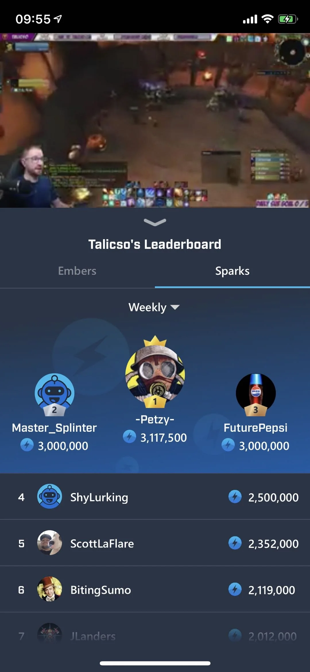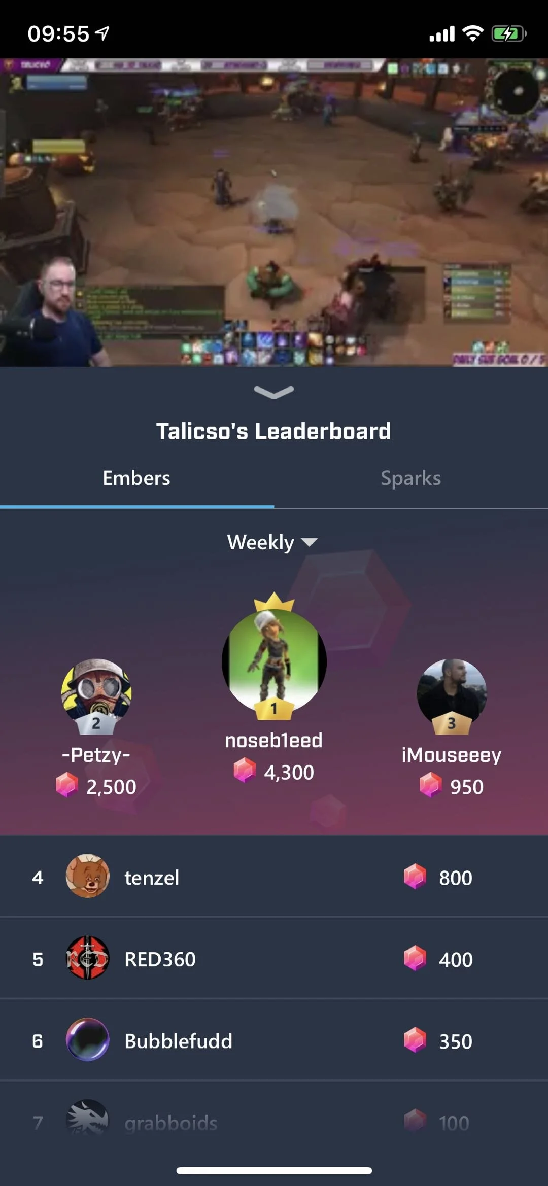 聊天室裡還能觀看觀眾們給直播主的Embers與Sparks數量排名,這可增加觀眾與直播主的互動