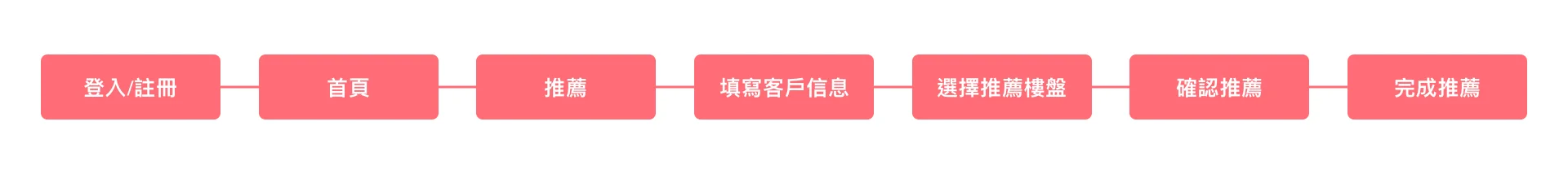 重構啟動後,我們與產品經理一同到一線公司做前期調研工作,並分析出首要及次要受眾群體,分別為置業顧問、銷售經理及機構經紀人,透過訪談、問卷及演示測試,我們得到了更多有效信息,這將幫助我們更有目標性的達到功能設計改造,使得用戶更加清晰簡易的使用我們的產品,更加便利環保的無紙化記錄信息。92%的用戶最常使用到推薦功能,顧問及經紀人通常使用此功能將房源推薦給有需求的人,如推薦成功將得到佣金,所以我們將推薦功能放置於一個重要且亮顯得位置,讓用戶能清晰可見,並達到一鍵推薦,再者客戶及佣金為次要功能,客戶列表將能幫助用戶有效控管及了解推薦進度及相關信息記錄,佣金則是只要成功推薦,將可獲得相應佣金,透過佣金的記錄,清晰明白地看見多少成功推薦的客戶,並且可精準記錄獲取多少佣金等。這些功能將幫助用戶更加統整記錄所有信息,以往的紙質記錄,常因為一些外在因素,導致資料的流失及損毀,信息上的不同步,而需要反覆校對,時間的浪費,所以線上信息化的建立是最有效的解決方式。