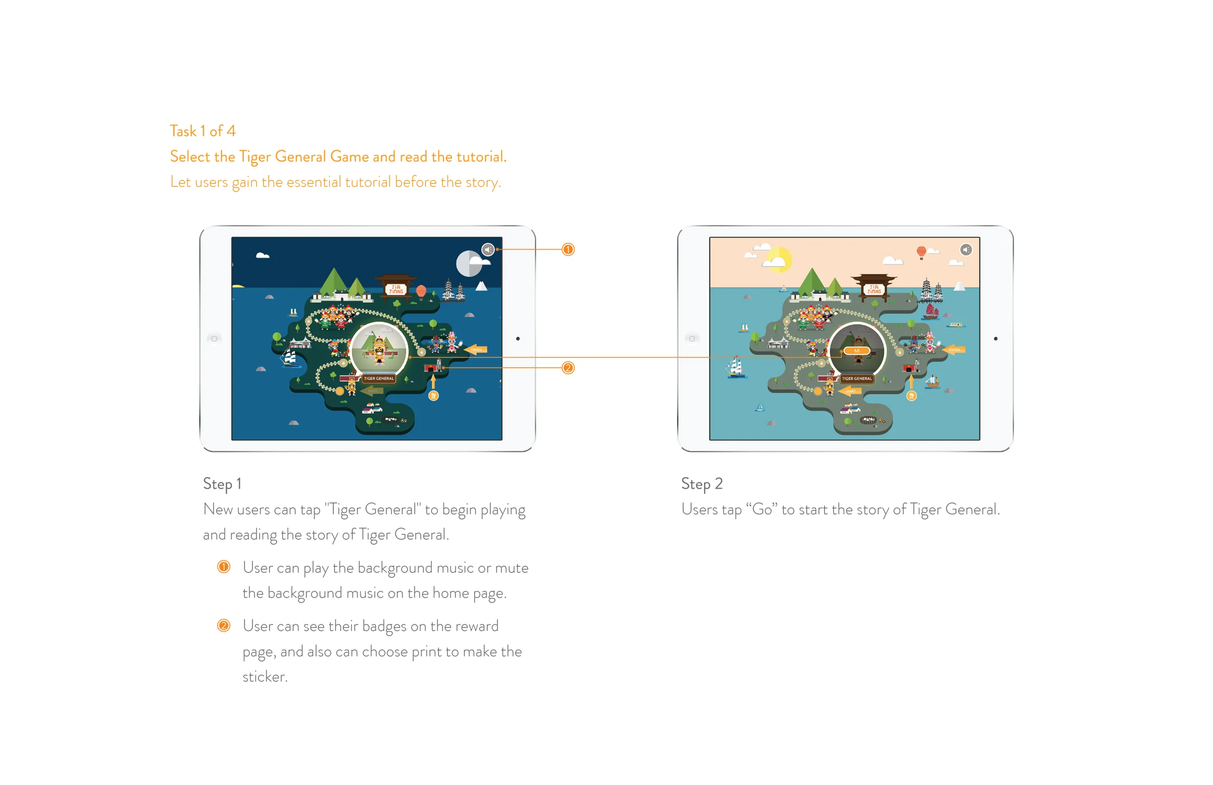 使用者需要觀看使用教學頁面,透過教學來了解故事中會用到哪些手勢,瞭解到如何使用才能更有效地完成任務。這個功能對於