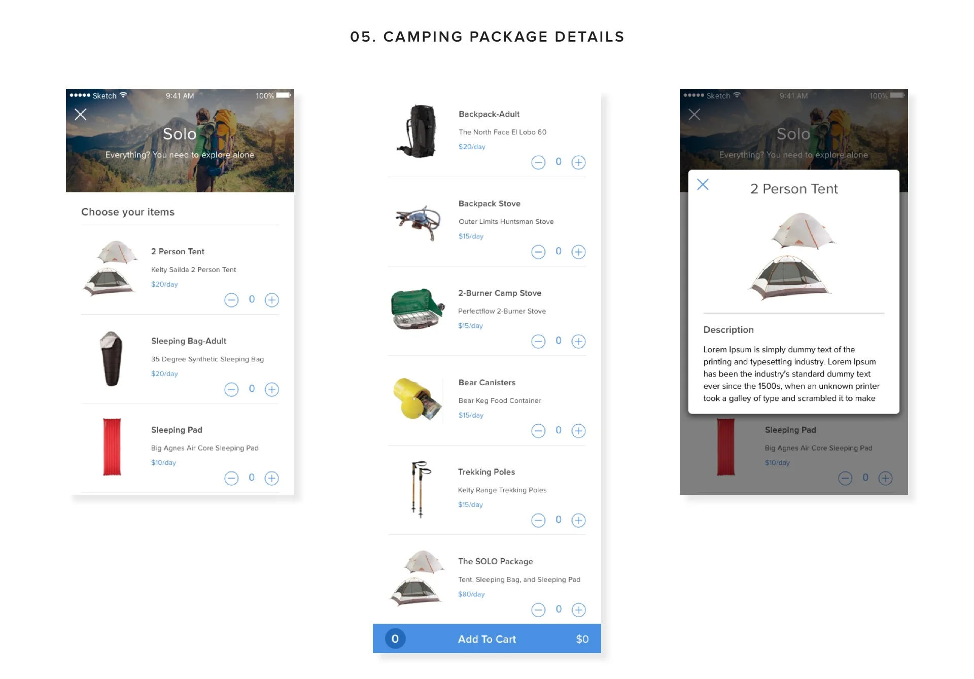 UX/UI Design / GUI Design / Prototype / Outdoor / Rent